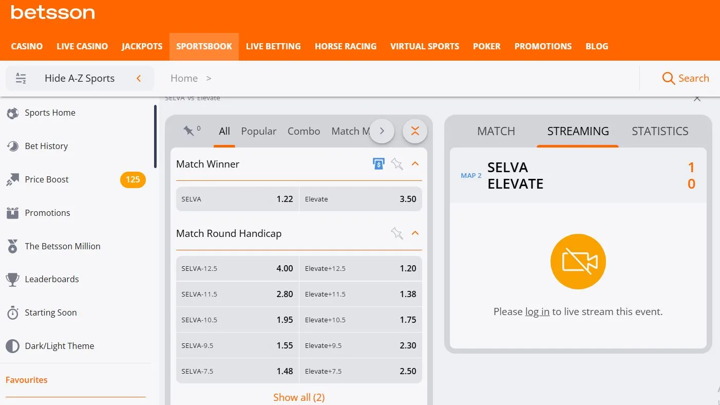Betsson provides a broad market selection, tailored to each discipline. Here’s a snapshot across popular titles: